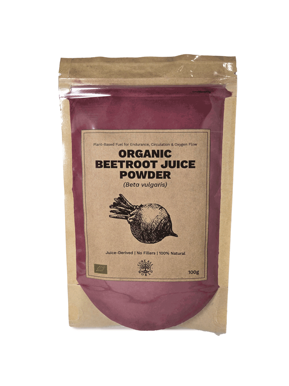 Our Organic Beetroot Juice Powder is made from freshly pressed beetroot juice, resulting in a vibrant, easily absorbed powder rich in natural nitrates. Trusted by athletes and herbalists alike, it supports blood flow, stamina, and oxygen delivery throughout the body. A clean, energizing plant ally for training, recovery, and daily vitality.