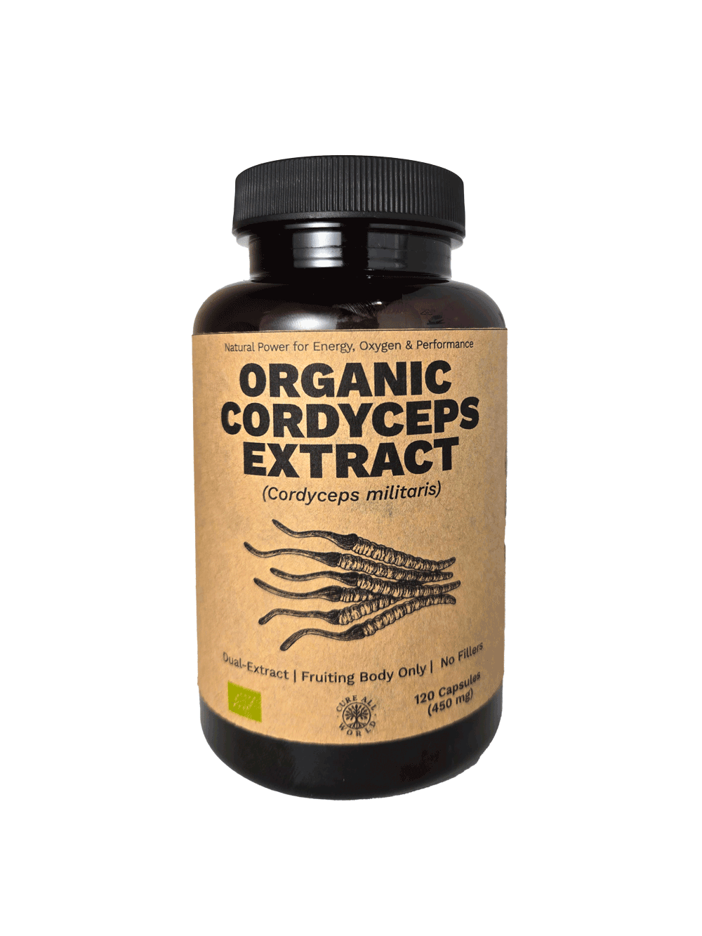 Our Organic Cordyceps Extract is made exclusively from the fruiting body of Cordyceps militaris—carefully cultivated and dual-extracted to deliver its most potent compounds, including cordycepin and beta-glucans. Traditionally used in Tibetan and Chinese medicine to support stamina, lung capacity, and sexual vitality. Cordyceps is now trusted by athletes, adventurers, and those seeking enhanced physical and mental performance.