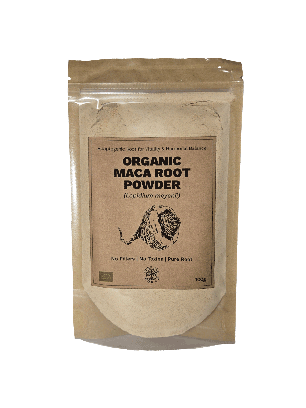 INGREDIENTS: 100% Organic Raw Maca Root Powder (Lepidium meyenii)