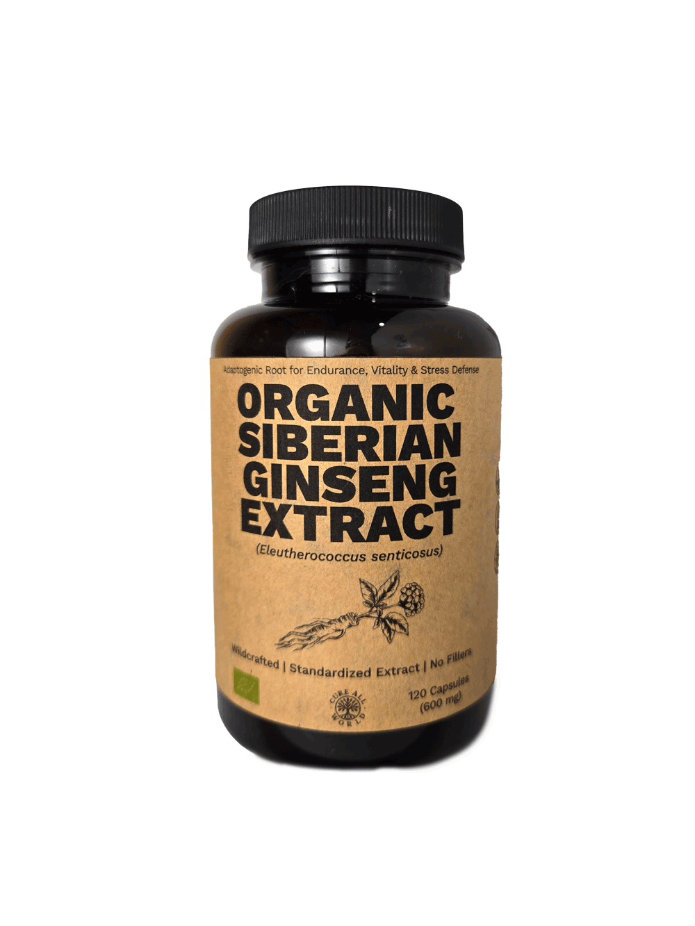 Our Organic Siberian Ginseng (Eleutherococcus senticosus) Extract is a time-honored adaptogen used to build stamina, increase resilience, and support physical and mental endurance. Unlike traditional ginsengs, Siberian Ginseng works by strengthening the body’s stress response over time — enhancing performance, recovery, and immune function without overstimulation. Ideal for daily balance and long-term vitality.